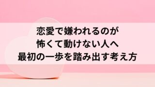 婚活・恋愛 恋愛で嫌われるのが怖くて動けない人へ|最初の一歩を踏み出す考え方 恋愛で嫌われるのが怖くて一歩踏み出せない人へ。行動できない理由と、不安を抱えたままでも動いていい考え方を整理します。 2026.01.11 婚活・恋愛