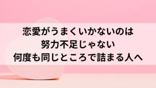 婚活・恋愛 恋愛がうまくいかないのは努力不足じゃない|何度も同じところで詰まる人へ 恋愛について調べて行動もしているのに、なぜか毎回うまくいかない人へ。努力不足ではない理由と、詰みかけている時に見直すべきポイントを整理します。 2026.01.11 婚活・恋愛