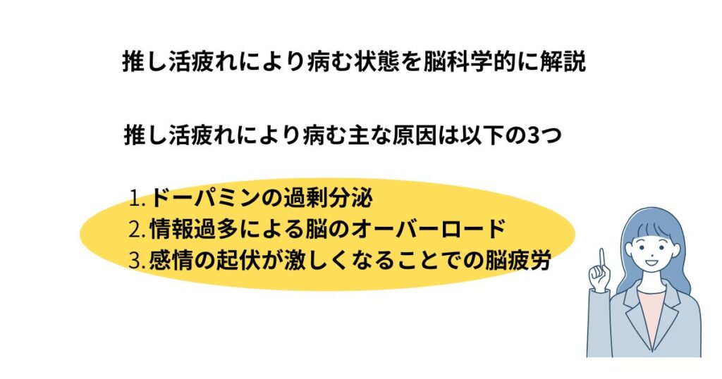 さらに、感情の起伏が激しくなることでの脳疲労も推し疲れの大きな原因です。