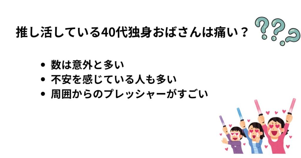 「推し活している40代独身おばさんは痛い?」というフレーズをネットで見かけることがあります。