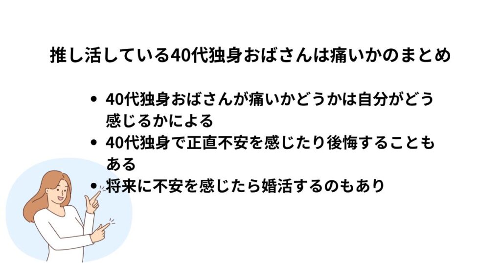 推し活している40代独身おばさんは、こういった不安を感じている人が多いようです。